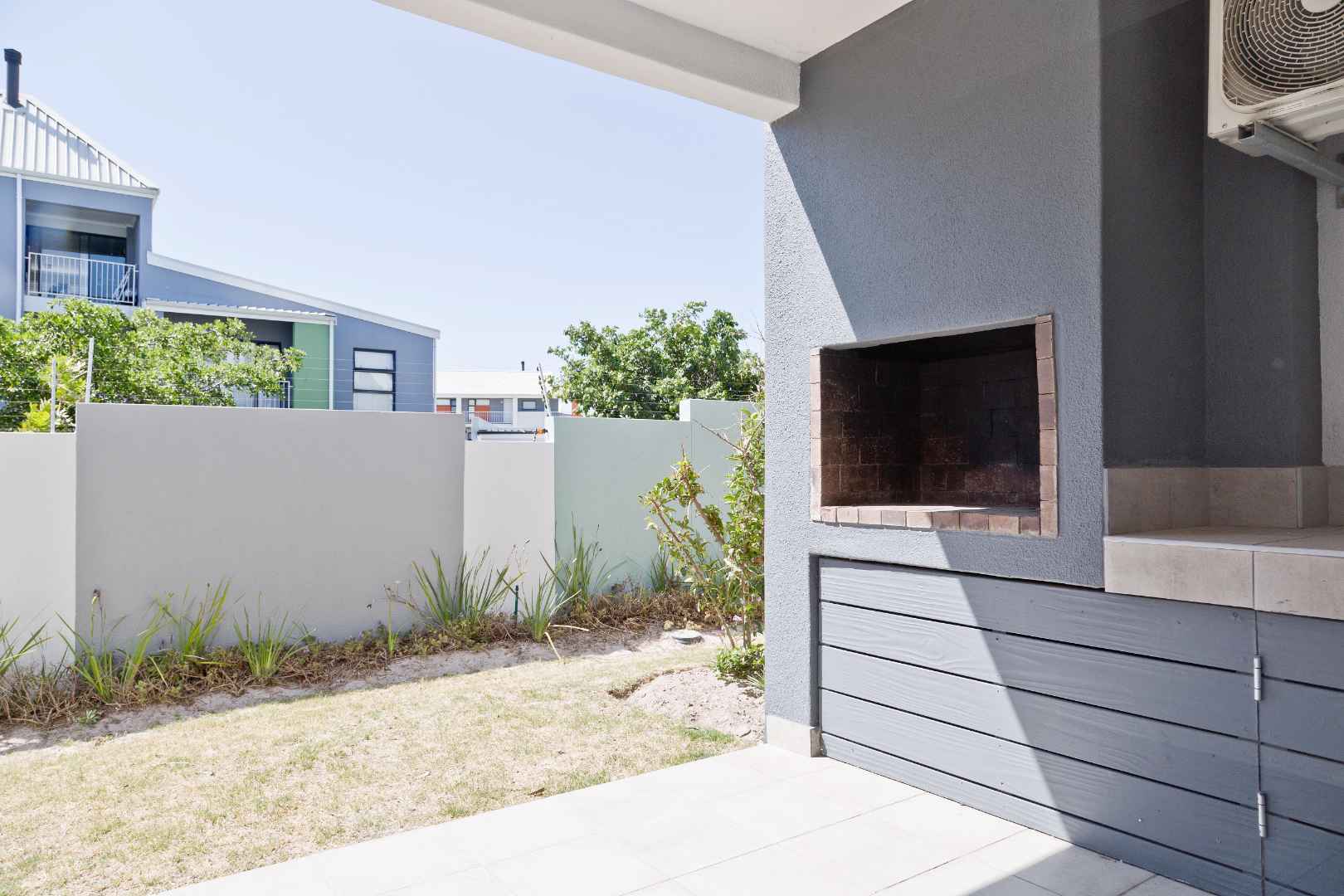 The complex offers large green open space, a sizeable swimming pool, braai facilities and a play park with a jungle gym.